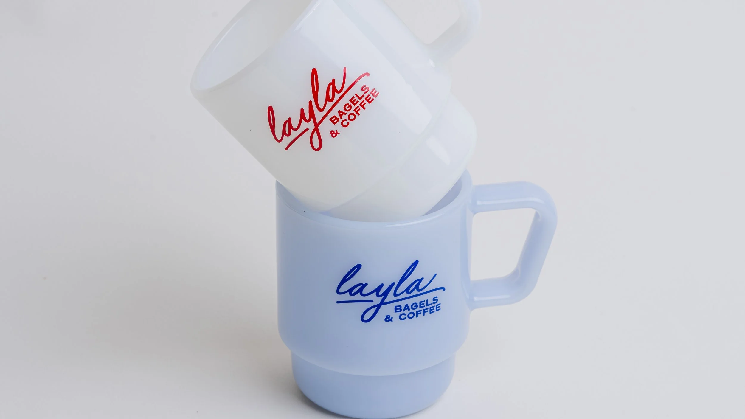 MERCH Milk Glass Mug $20.00 Scooped, Double Toasted Hat $30.00 White Crew Neck $50.00 Sand Crew Neck $50.00 Hat $25.00 Layla T-Shirt $28.00 Bagelman T-Shirt $28.00 Diner Mug $16.00 Fellow 16oz Move Mug $35.00